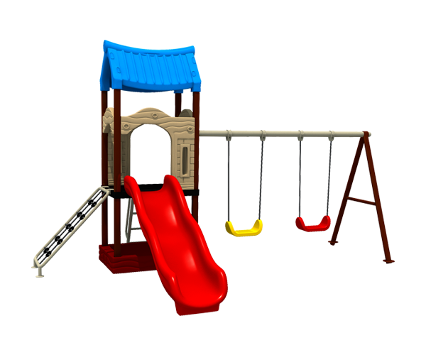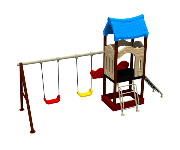 - Columpios con asientos de plástico rotomoldeado o flexibles de cinturón y/o de bebé y cadena galvanizada o cadena galvanizada con recubrimiento de plástico.